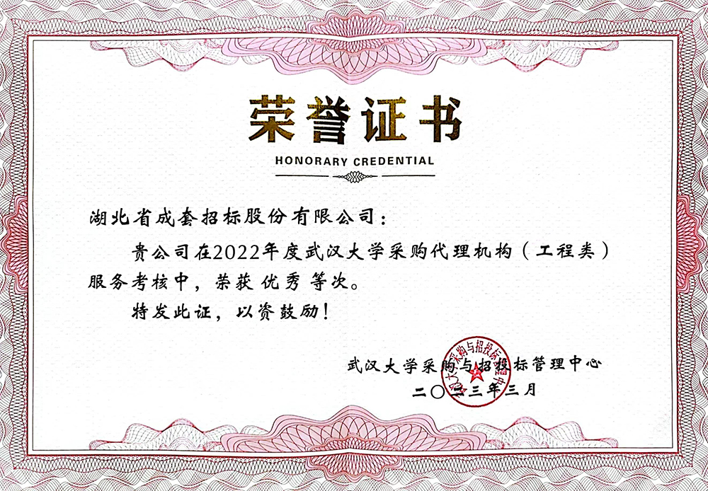 2022年,成套公司在武漢大學(xué)承擔(dān)的工程招標(biāo)代理項(xiàng)目數(shù)量及質(zhì)量均位居前列,順利完成該年度投資額最大的武漢大學(xué)電子信息學(xué)院教學(xué)樓建設(shè)項(xiàng)目的招標(biāo)工作,贏得了學(xué)校的一致肯定及好評(píng)。同時(shí),公司憑借過硬的專業(yè)水平,負(fù)責(zé)編制的招標(biāo)文件在年度同類別招標(biāo)項(xiàng)目中被武漢大學(xué)作為范本供其他代理機(jī)構(gòu)學(xué)習(xí)使用。