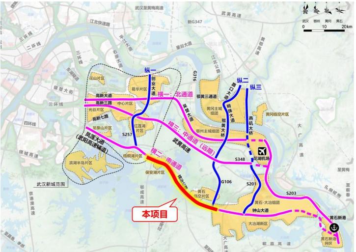 該項目屬于武鄂黃黃“三橫”南通道中的一段,路線全長27.949 公里,項目總投資約為18億元。項目的實施將進(jìn)一步加強(qiáng)武鄂黃黃的交通路網(wǎng)建設(shè),有利于加快推動武鄂黃黃同城化發(fā)展,對加快黃石融入武漢都市圈的核心區(qū)具有重要意義。