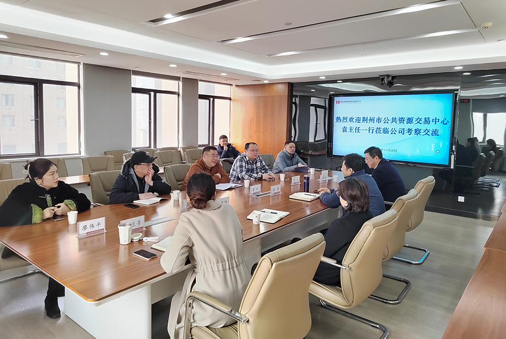 近日,荊州市公共資源交易中心主任袁新一行到成套公司調(diào)研。公司黨委副書(shū)記、總經(jīng)理項(xiàng)前與袁新會(huì)面交談,公司副總經(jīng)理劉艷旸及相關(guān)部門(mén)負(fù)責(zé)人出席會(huì)議。