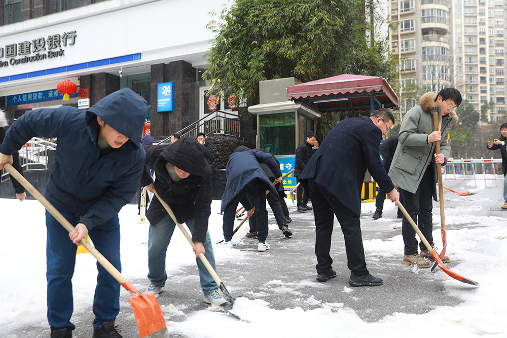 2月22日,武漢市低溫雨雪冰凍天氣持續(xù),給出行帶來(lái)了諸多不便。為貫徹落實(shí)省委組織部《關(guān)于在防范應(yīng)對(duì)低溫雨雪冰凍災(zāi)害中充分發(fā)揮基層黨組織戰(zhàn)斗堡壘作用和廣大黨員先鋒模范作用的通知》精神,成套公司黨委迅速集結(jié)黨員干部,開展鏟雪除冰志愿行動(dòng),全力鏟除公司辦公大樓周邊路面的積雪障礙,保障了道路通暢和人員出行安全。