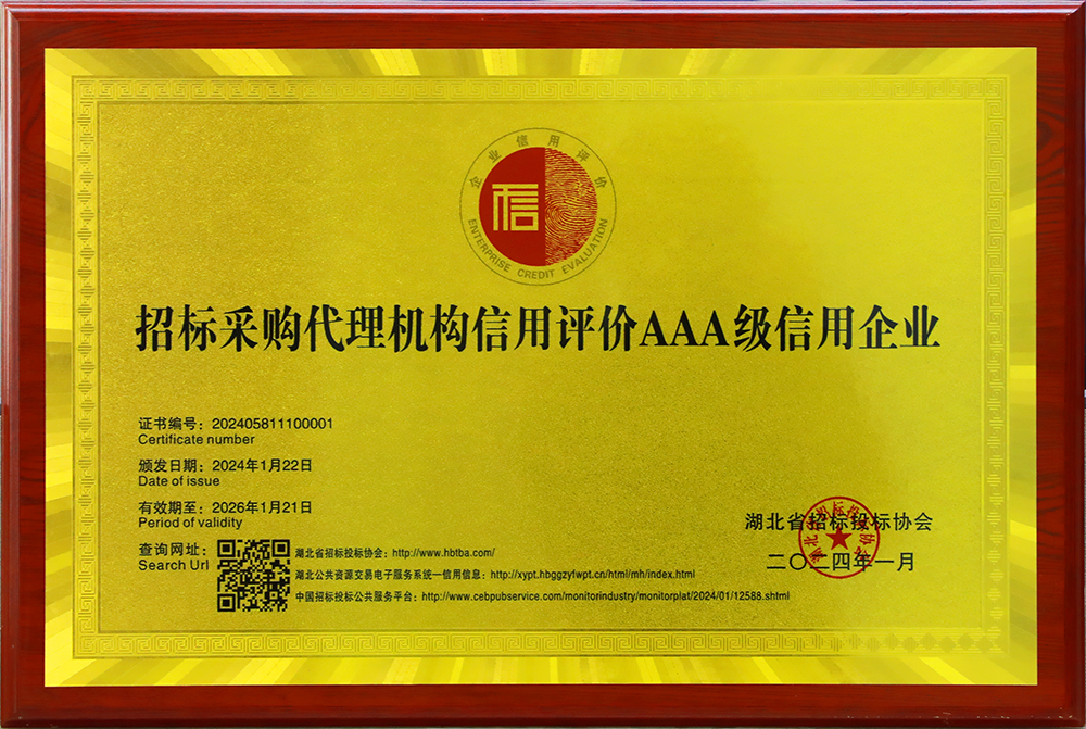 近日,在由湖北省招標(biāo)投標(biāo)協(xié)會(huì)舉辦的第三屆四次理事會(huì)暨表彰大會(huì)上,成套公司獲評(píng)招標(biāo)采購(gòu)代理機(jī)構(gòu)信用評(píng)價(jià)最高AAA等級(jí),公司20名業(yè)務(wù)骨干獲“招標(biāo)先進(jìn)個(gè)人”榮譽(yù)稱號(hào),進(jìn)一步體現(xiàn)社會(huì)各界對(duì)公司在招標(biāo)采購(gòu)咨詢服務(wù)領(lǐng)域綜合實(shí)力的高度認(rèn)可。