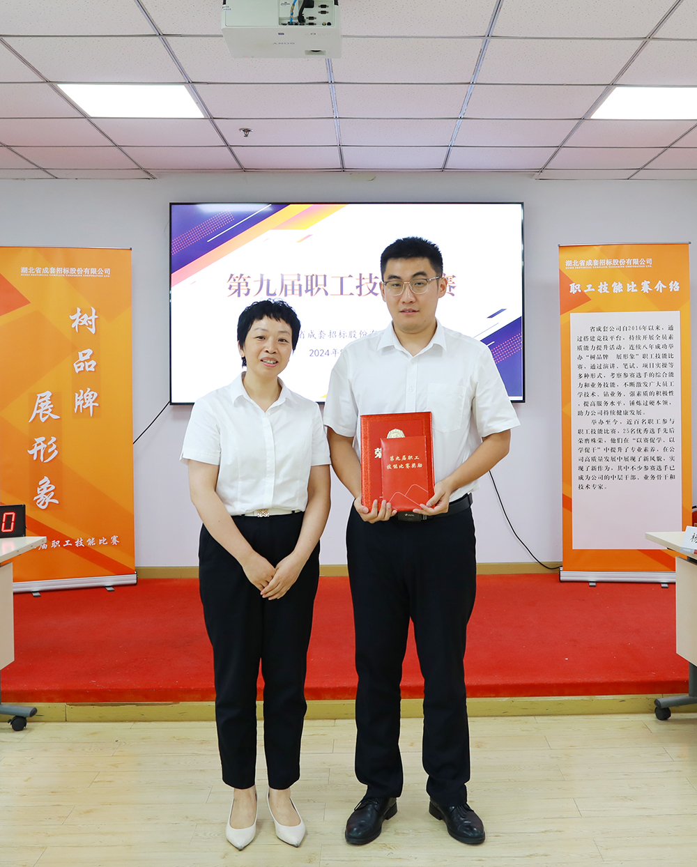 公司黨委委員、副總經(jīng)理鐘元菊向獲得一等獎(jiǎng)的選手殷雄峰頒獎(jiǎng)