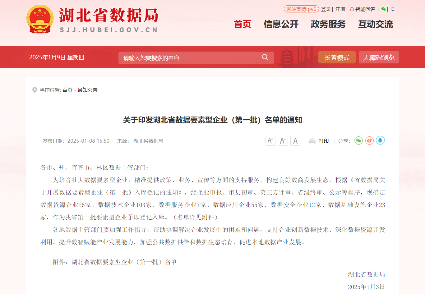 1月8日,湖北省數(shù)據(jù)局發(fā)布湖北省數(shù)據(jù)要素型企業(yè)(第一批)名單,省成套招標(biāo)公司入選湖北省首批登記入庫(kù)的“數(shù)據(jù)技術(shù)企業(yè)”和“數(shù)據(jù)應(yīng)用企業(yè)”。